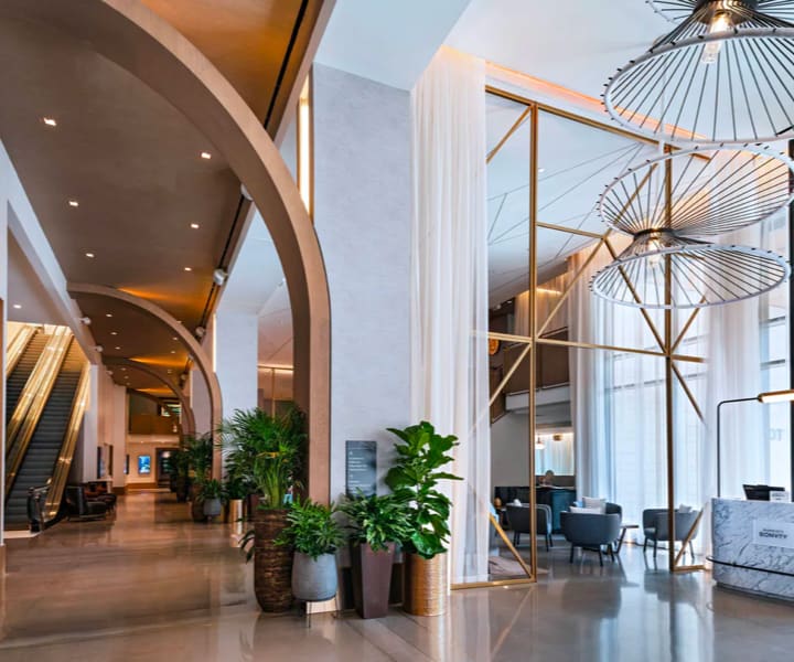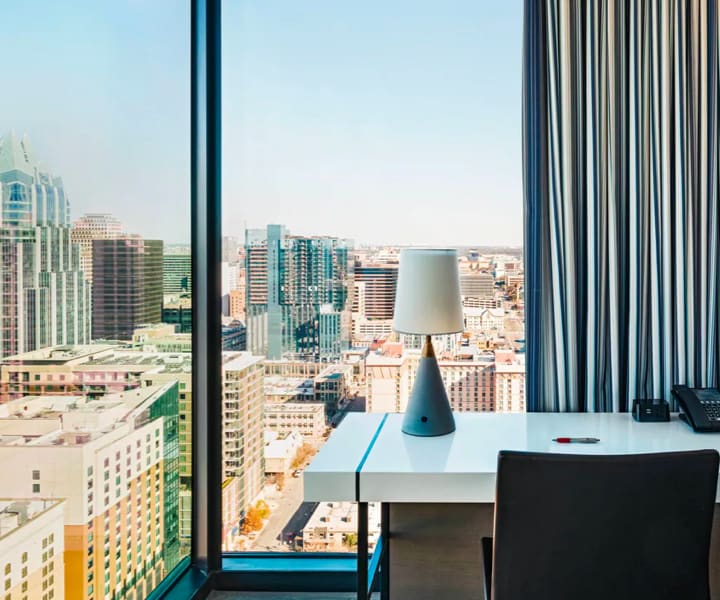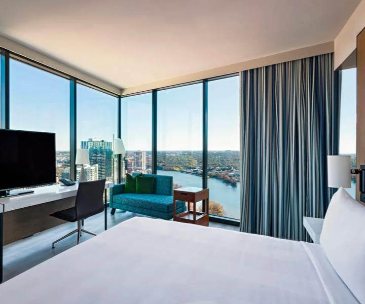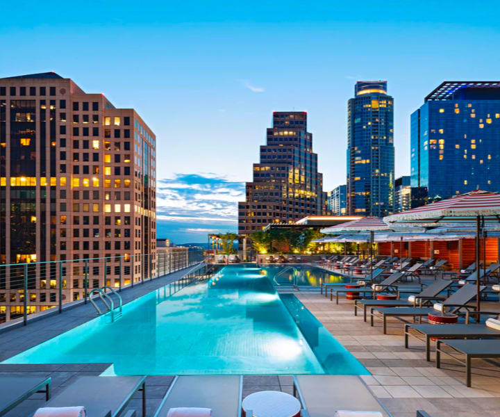 The Austin Marriott Downtown is a chic urban retreat in the heart of Austin. Take a dip in the rooftop pool with breathtaking views, enjoy a cocktail at the two-level lobby bar, dine at the signature restaurant, Corinne and unwind at the rooftop tropical bar with tiki cocktails.